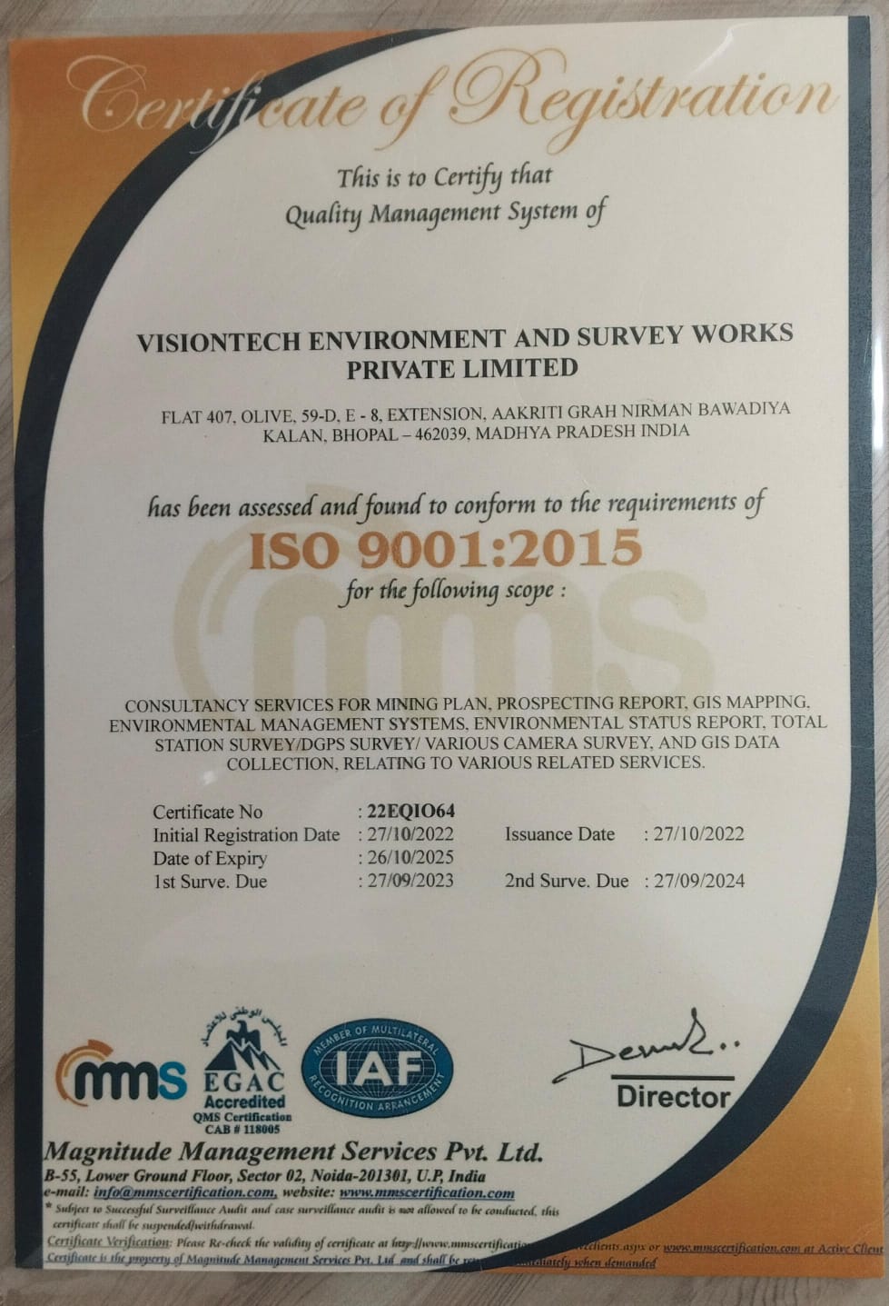 Visiontech Environment and Survey Works Private Limited are incorporated on 08 November 2021. Visiontech Environment and Survey Works Private Limited (VE & SE) is India's leading Environment, Health and Safety Consulting firm. Visiontech Environment and Survey Works are carrying out Environment Impact Assessment (EIA) studies and facilitate to obtain Environmental clearance for Mining of Minerals Opencast Mining. Visiontech Environment and Survey Works are also registered with certified under ISO 9001:2015, ISO 14001:2015