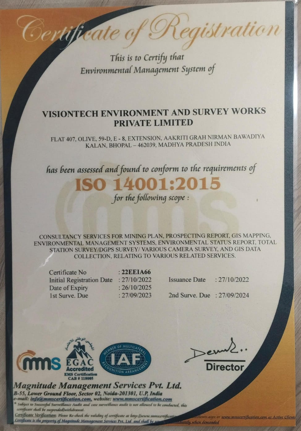 Visiontech Environment And Survey Works Private Limited has also provided a vast range of consultancy services like Mining Plan, Mining Scheme, Prospecting Report, Prospecting Scheme, DGPS/Total Station and Drone Survey, Environment Clearance, NOC to abstract Ground Water from CGWA/CGWB, CTE & CTO from Pollution Control Board and baseline Survey for various projects to all sectors of economy particularly Government, Semi - Government, Corporate and reputed Private Sector.
